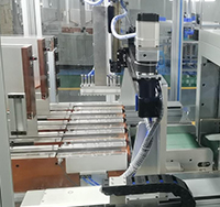 取電芯入膠盒 | 取電芯入膠盒:根據后面需求,按數量從同一個檔位 取出,根據正反極,放到相應位置 效率: 5000-6000PCS/H |